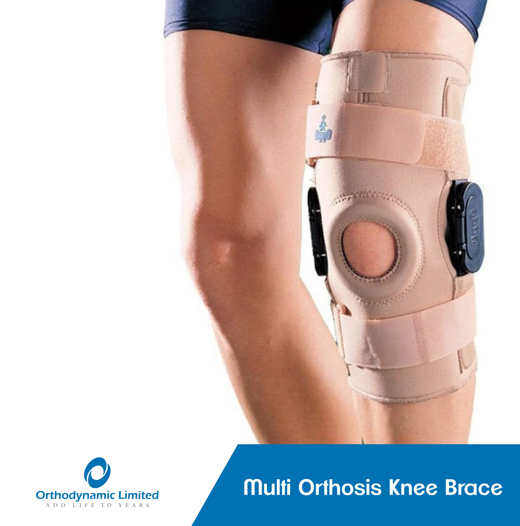 Lightweight Knee Brace With Increased Stability & Protection The Multi Orthosis Knee brace has a Polycentric hinge with flexion and extension pin-stops for a controlled range of motion. It is lightweight with an open patella design which Increases stability and provides support and protection. Contact Us Email: info@orthodyna.com