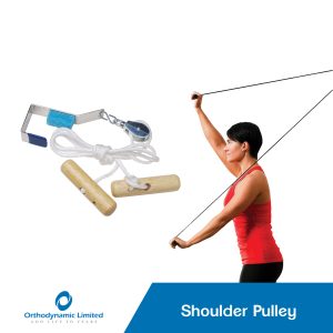 Pulleys can help you stretch your shoulder in various directions to improve mobility and, ultimately, the function of your shoulder. The shoulder pulley is an apparatus hooked over the top of a door, with a small pulley system near the top and a rope with handles hanging down from the pulley.