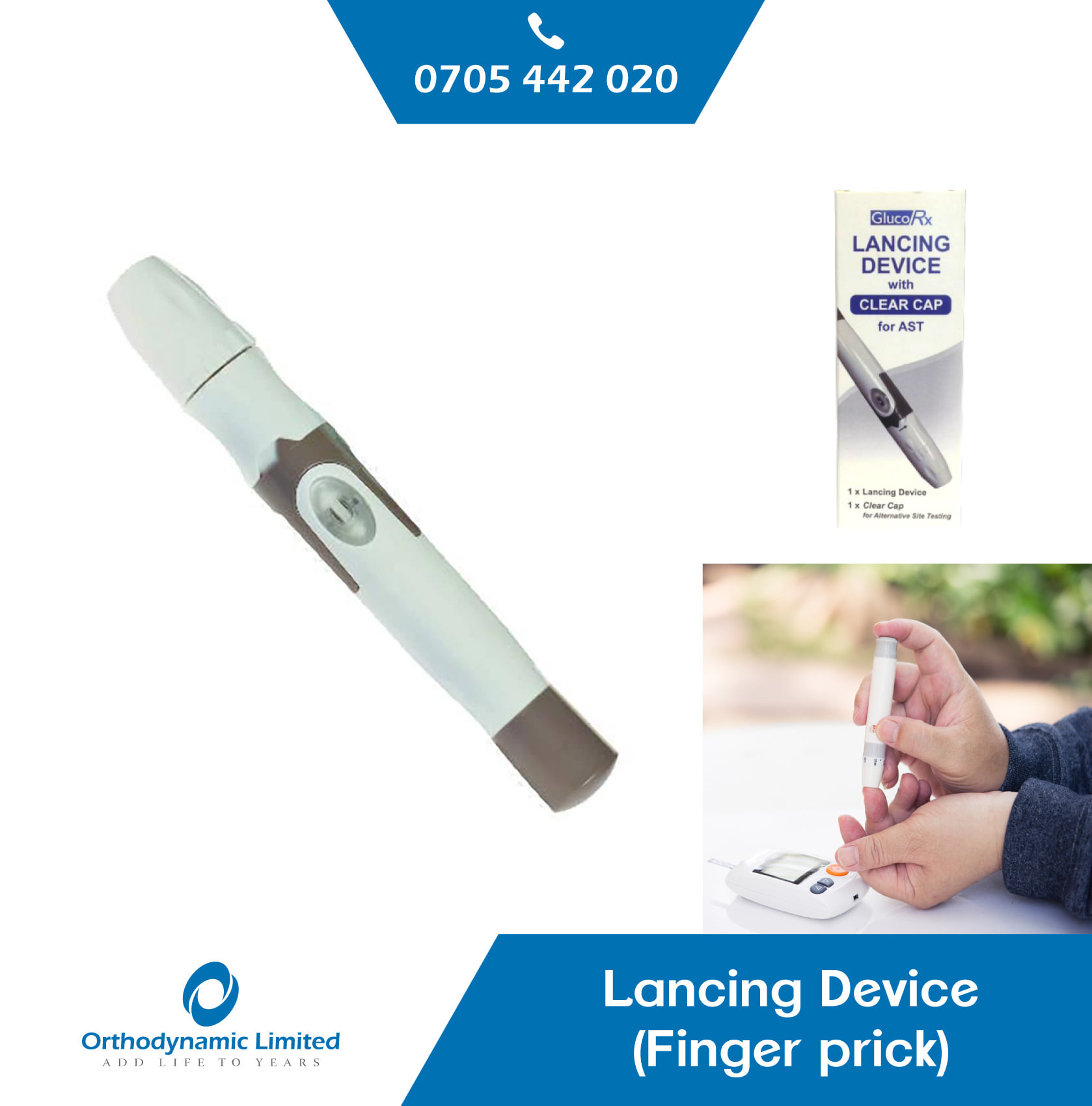 Lancing Device is a small needle that is used to prick the skin to obtain a blood sample, used with a lancing device that helps to make it more effective and less painful, however, it can be used without one by just sticking the skin with the needle. Once a small blood sample is available, it can easily be put into a machine to run a test.