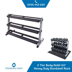 In conclusion, the Body-Solid 60″ Heavy Duty Dumbbell Rack with 3rd Tier is a sturdy and space-efficient storage solution designed to keep your workout area organized, tidy, and safe. With its durable construction, versatile design, and generous storage capacity, this rack is the perfect addition to any home gym or commercial fitness facility.