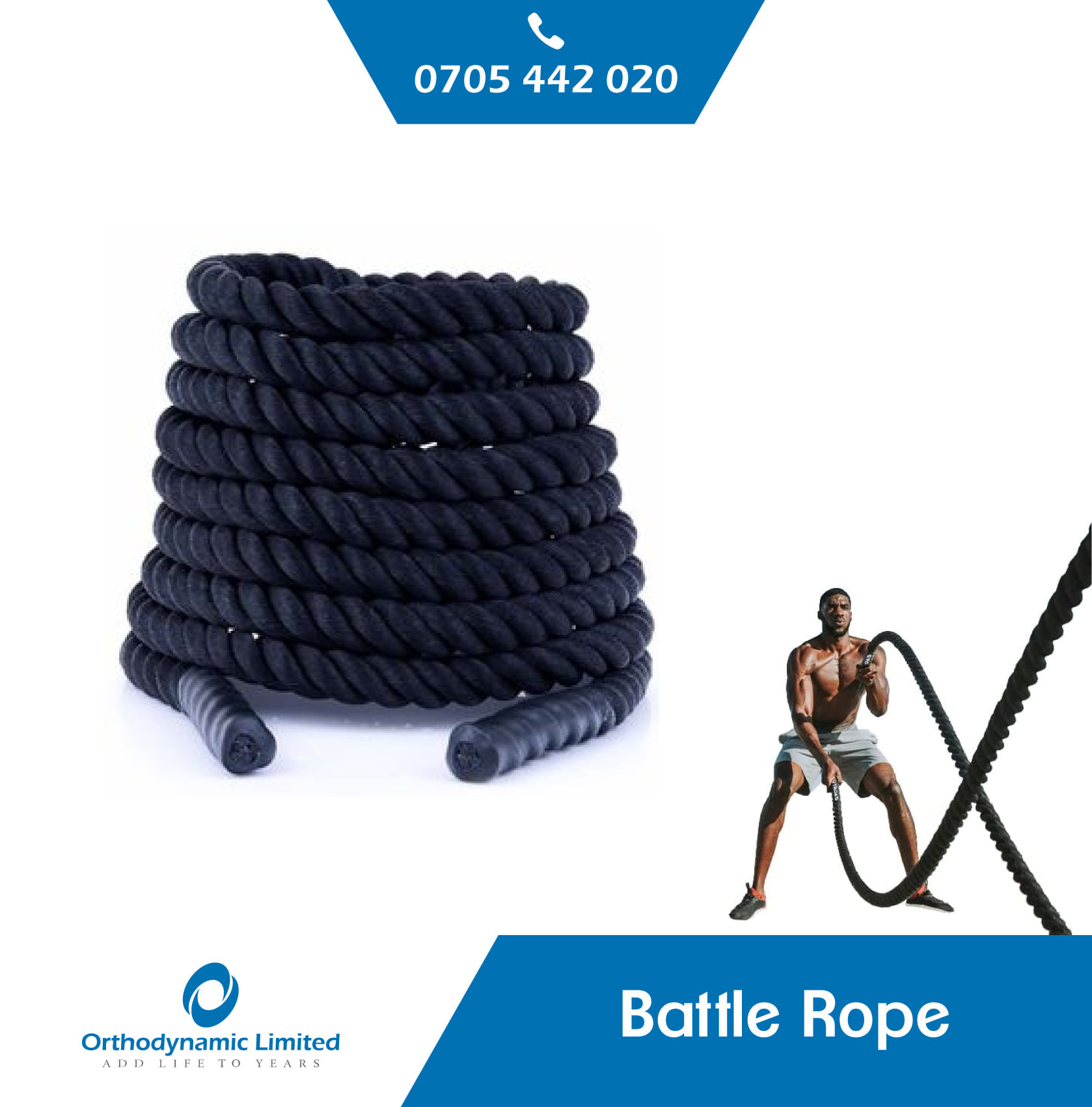 The battle rope is an ideal tool for strengthening the upper body muscles, especially hands, wrists, arms and shoulders, and for toning exercises. Useful for those who practice tennis, running, martial arts, boxing clubs, rugby, and training camps and all fitness enthusiasts who try to burn fat and increase muscle mass. A powerful tool combines velocity and resistance training to develop power, stamina, strength and endurance in hardcore training. Battle ropes are used for cardio workouts improving body balance and advanced muscular