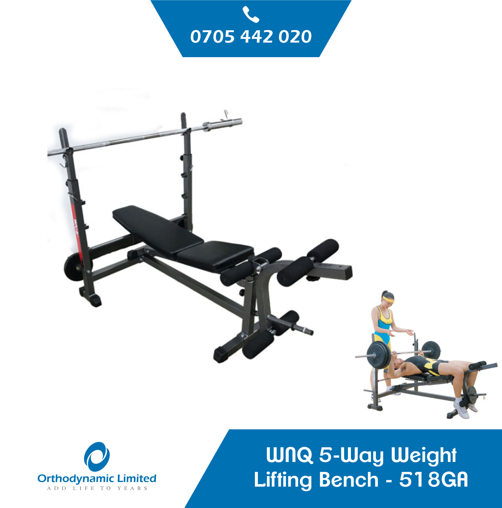 Introducing the WNQ 5-Way Weight Lifting Bench -518GA, an innovative and compact gym trainer designed to provide comprehensive strength training for the legs, chest, arms, and abdomen, all in one convenient and space-saving package.
