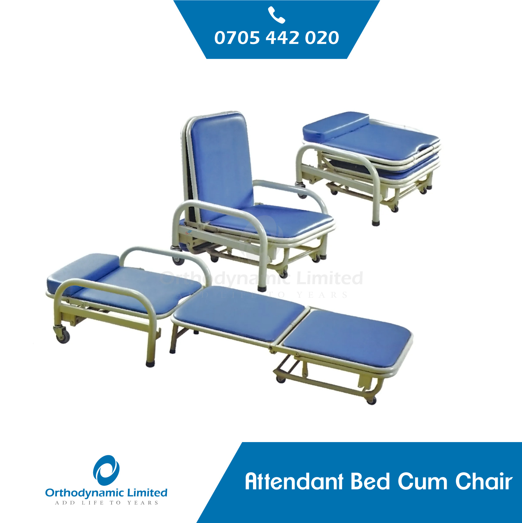 The Attendant Bed Cum Chair is developed for multiple uses and is made with quality superlative material. It can be folded to be a chair or unfolded to be a bed