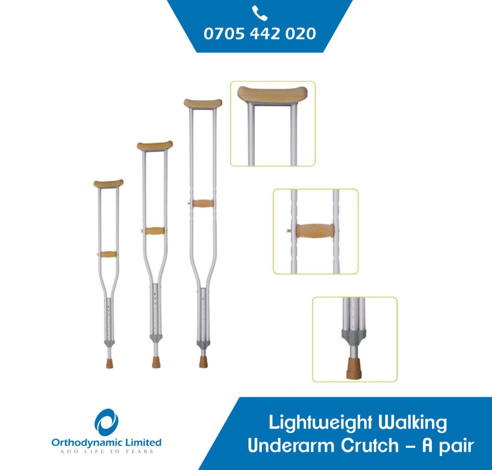 Axillary Crutches, also called Underarm crutches, are the most common type of crutch- these are the typical crutches assigned to patients in recovery from ankle or knee injuries. They have a pad that is held under the arm, pressed into the patient’s side during use. Axillary crutches are used by placing the pad against the ribcage beneath the armpit and holding the grip below and parallel to the dwelling. They are usually used to support patients with temporary restrictions on ambulation.