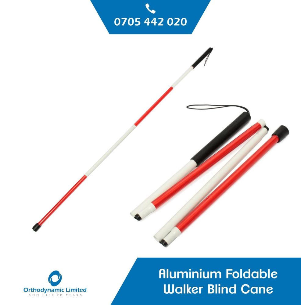 Description Aluminum Foldable Walker Blind Cane is a lightweight folding blind cane for blind people. This cane can be folded up in 4 parts without a tool while not in use and is easy to store.