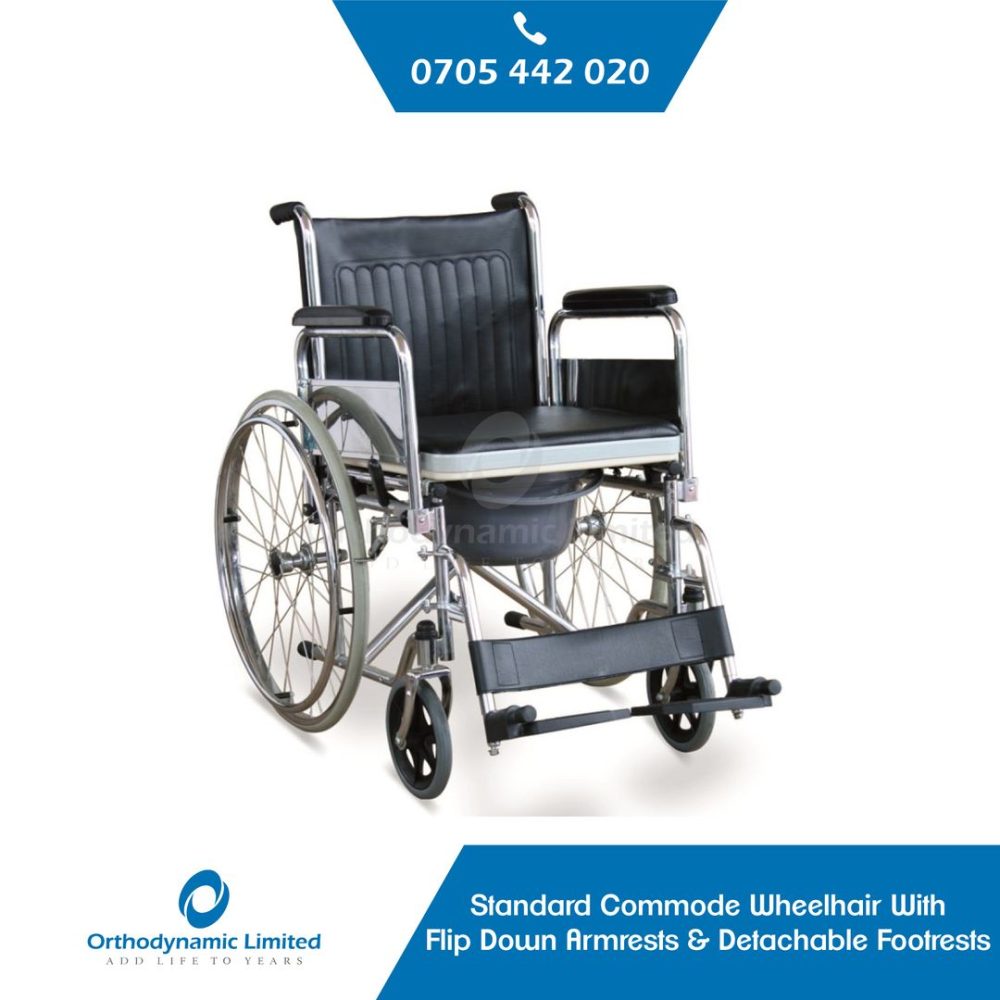Introducing the Manual Standard Commode Wheelchair with Flip-Down Armrests & Detachable Footrests – a revolutionary solution designed to address all your mobility and bathroom needs with ease and comfort.