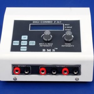 The modes are burst, modulation, constant, MRW, SDI, and SD2. Dual-channel for use with two or four electrodes. The timer runs from five minutes to an hour, with auto-shutoff or continuous. 100mA output, pulse width is 50 us-300 us adjustable, 10 us/step. The pulse rate of 2-150 Hz, adjustable.